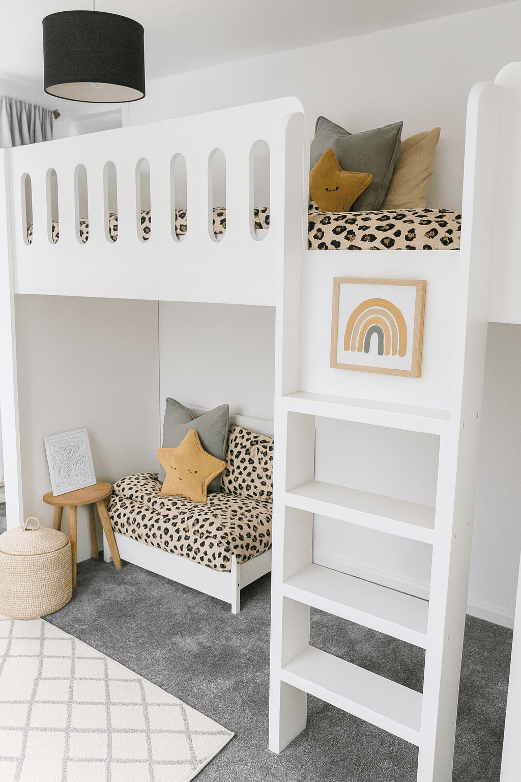 On Pictures Show The High Sleeper With Ladder With Various Options . For Example, Ladder Style, Top Rail Style, Colour. What Ever Options You Decide, This Bed Is Guaranteed To Save Space In Any Bedroom! – Mattresses Can Be Added here For An Additional Cost. Please note, We Have Standard and Bespoke Sized Mattresses Available! – If You Are Also Looking At A Full Bedroom Fit Out, We Also Provide Funky Matching Furniture Items Including Wardrobes, Drawers, Bedside Units, Toy Boxes! We Offer Many Kids Bedroom Storage Ideas To Suit Your Room!