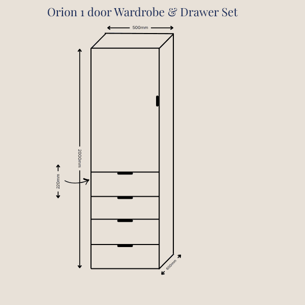 Create a beautifully organised bedroom with the Orion 1 Door Wardrobe & Drawer Set — a sleek, space-saving storage solution designed for modern bedrooms. Combining a spacious wardrobe with practical drawers, this unit provides everything needed to keep clothes, toys and essentials neatly stored while maintaining a clean, minimal bedroom look.