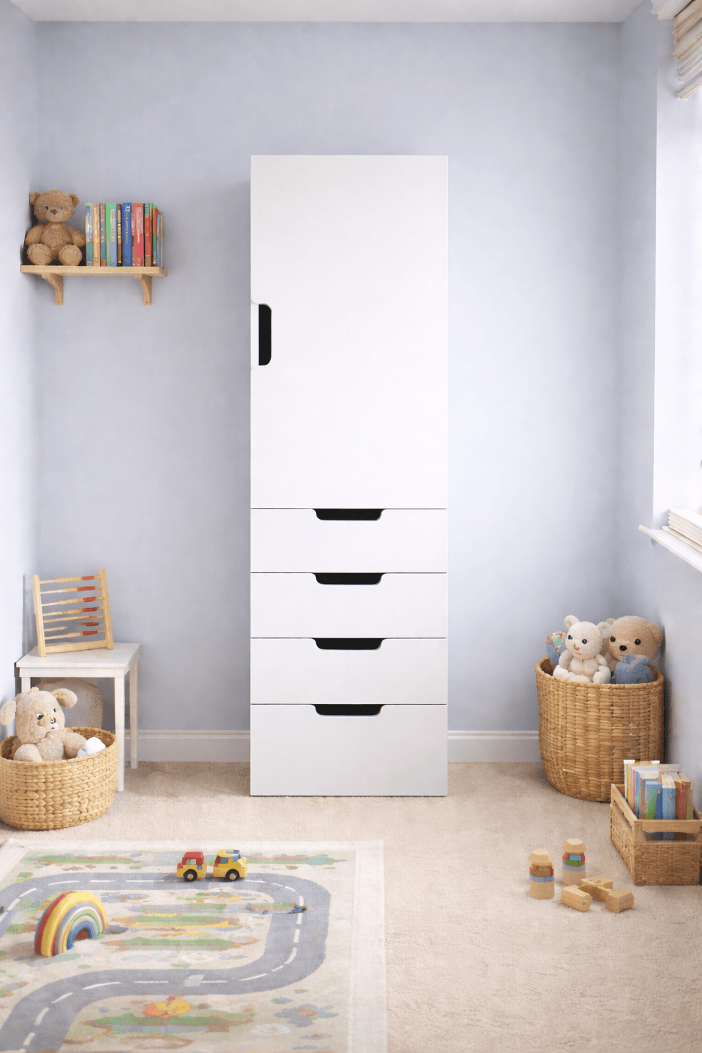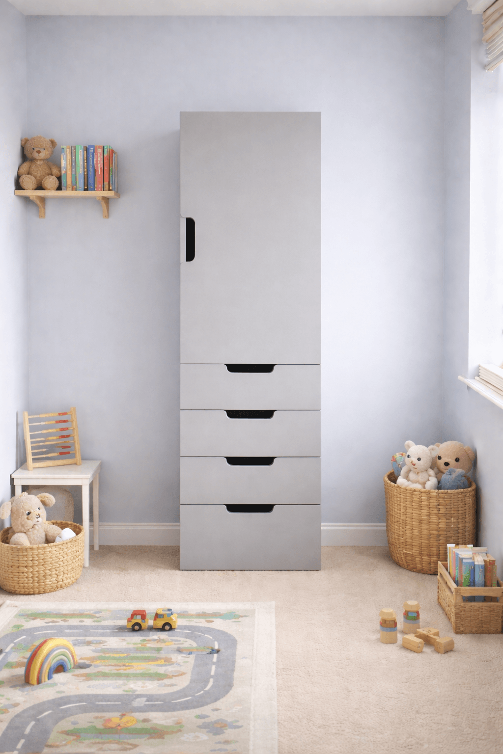 The minimalist design means the Orion wardrobe pairs beautifully with modern bedroom décor and complements a wide range of furniture styles. Whether styled in a calm neutral room or a playful children’s bedroom, this storage unit creates a clean and organised environment.
