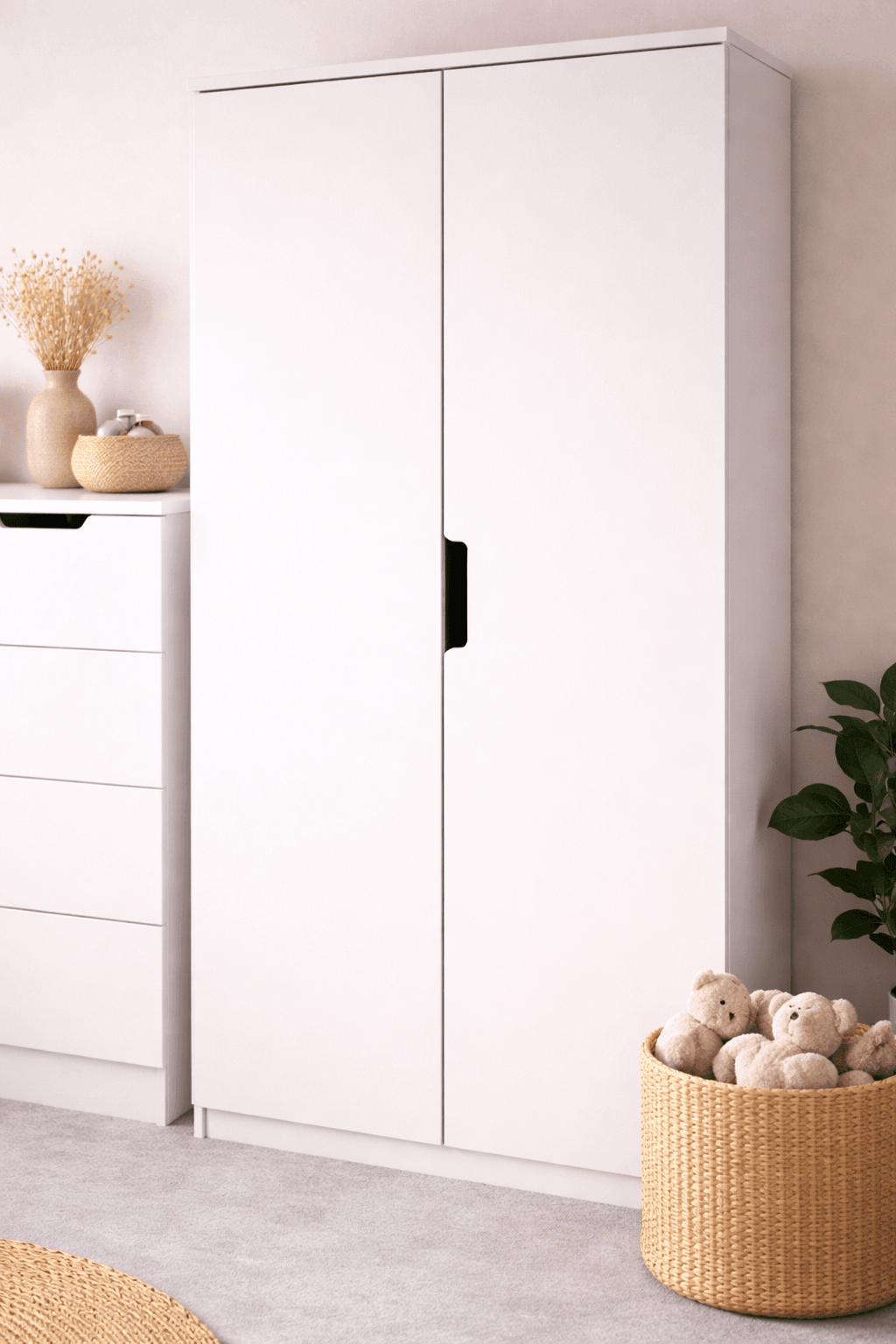 The POLAR 2 Door Wardrobe is a sleek and practical storage solution designed to keep clothing and bedroom essentials neatly organised while maintaining a clean modern look. With its minimalist design and recessed cut-out handles, this wardrobe offers a contemporary style that blends beautifully into modern bedrooms.