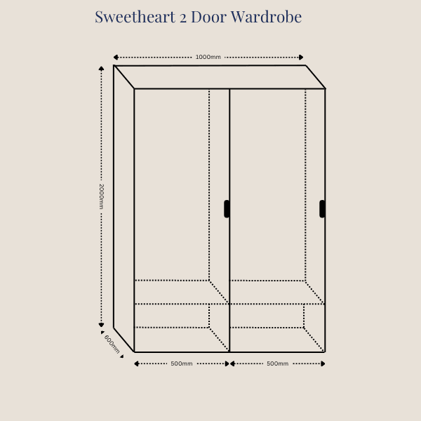 The Sweetheart 2 Door Wardrobe combines durability, style, and practical storage, helping create a bedroom that is organised, functional, and full of personality.