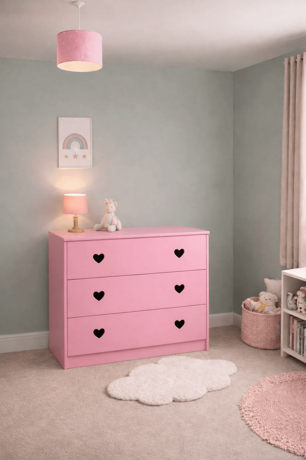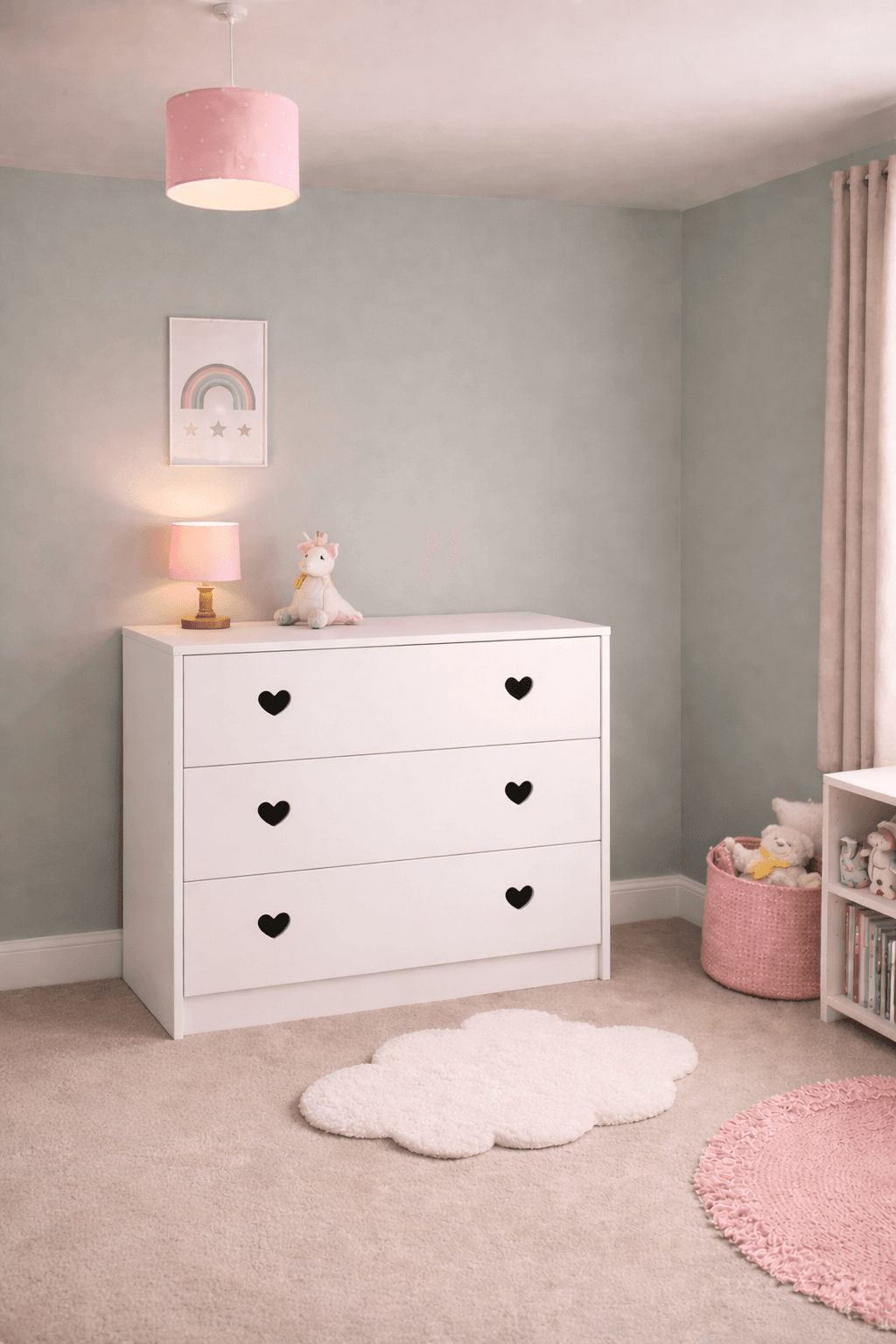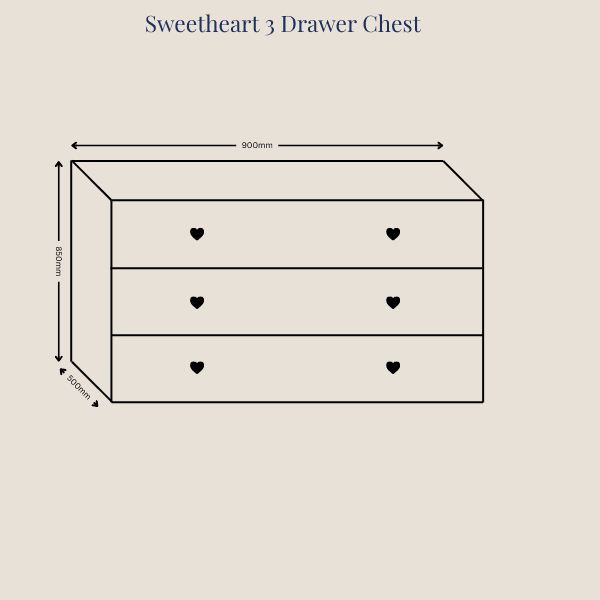 Create a warm, inviting, and beautifully organised space your child will love with the Sweetheart 3 Drawer Chest — where function meets a little bit of magic.